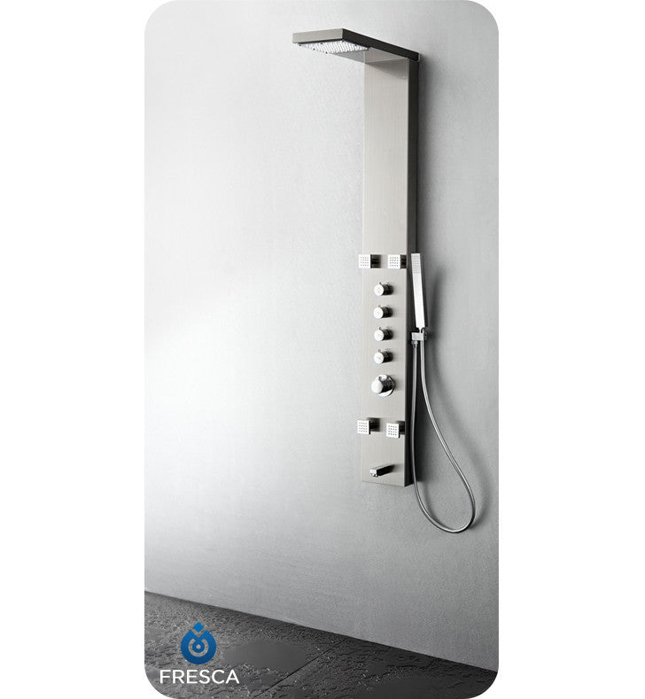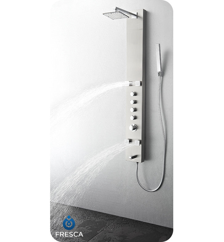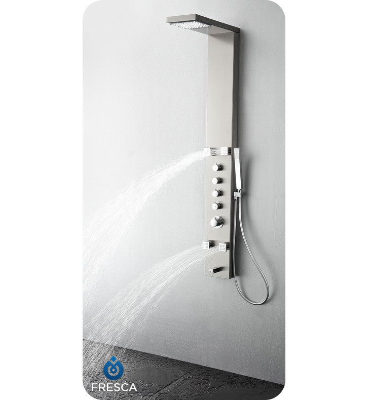 Engineered with a rain showerhead, 4 powerful body spray jets and a hand shower, down sprout. Massaging shower experience.