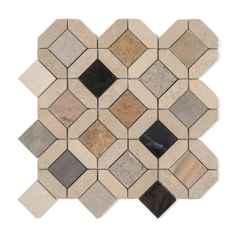 Multicolor Honed Diamonda Limestone Mosaic (MYS)