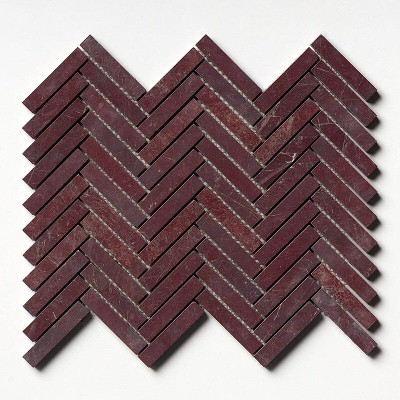 Red Bordeaux Honed Herringbone 5/8x3 Marble Mosaic (MYS)