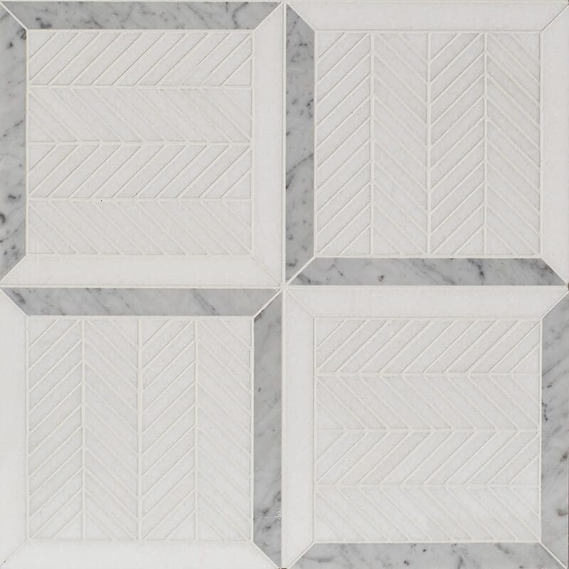 Thassos White, White Carrara Multi Finish Marina Chevron Marble Mosaic (MYS)