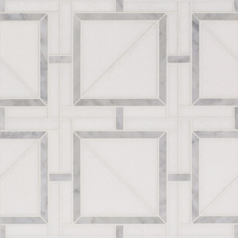 Thassos White, White Carrara Multi Finish Magra Lattice Marble Mosaic (MYS)