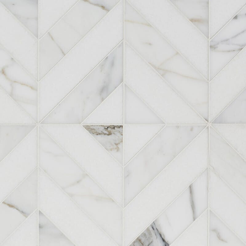 Thassos White, Calacatta Gold Honed Marina Chevron Marble Mosaic (MYS)