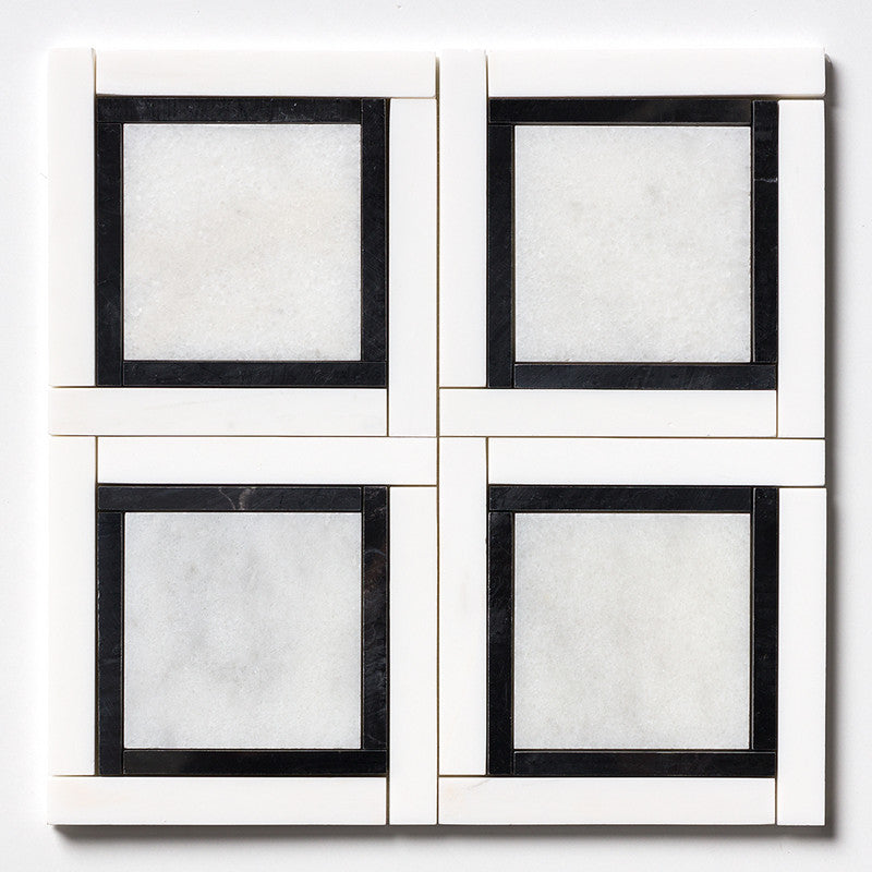 Glacier, Black, Snow White Multi Finish Cambridge Marble Mosaic (MYS)