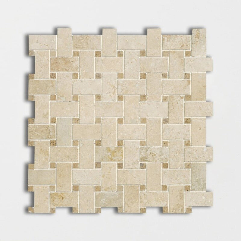 Ivory Honed Basket Weave Travertine Mosaic (MYS)