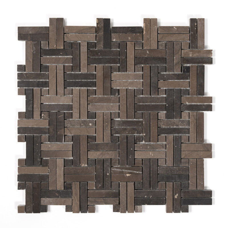Black, Rustic Terracotta Honed Basket Weave Marble Mosaic (MYS)