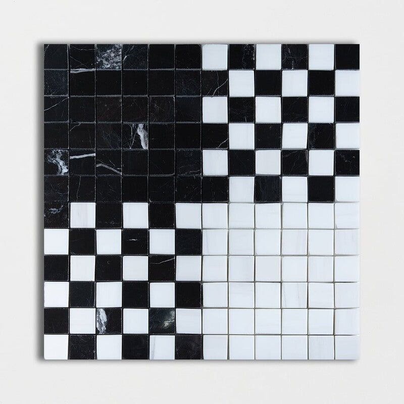 Black, Snow White Multi Finish Checker And Solid Marble Mosaic (MYS)