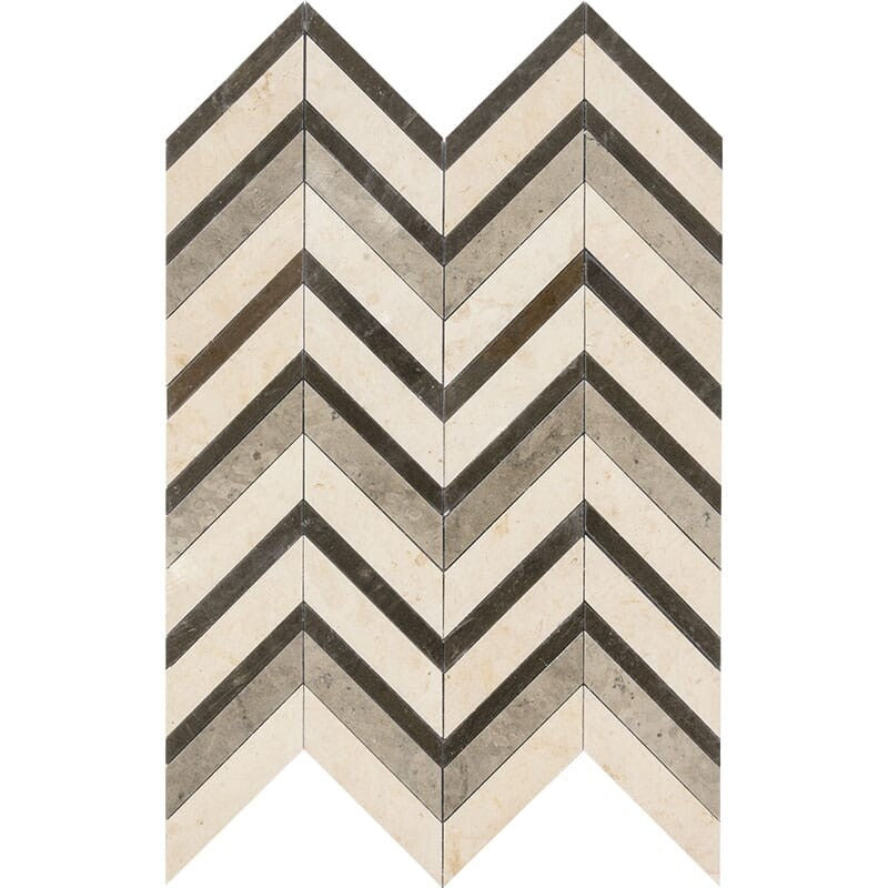 Bosphorus, Heartmere, Britannia Honed Chevron Fusion Waterjet Limestone Mosaic (MYS)