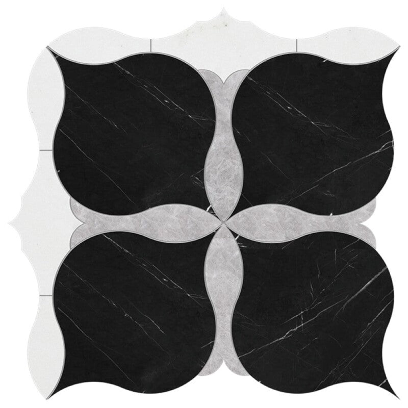 Black, New Silver Shadow, Snow White Multi Finish Amelia Waterjet Marble Mosaic (MYS)