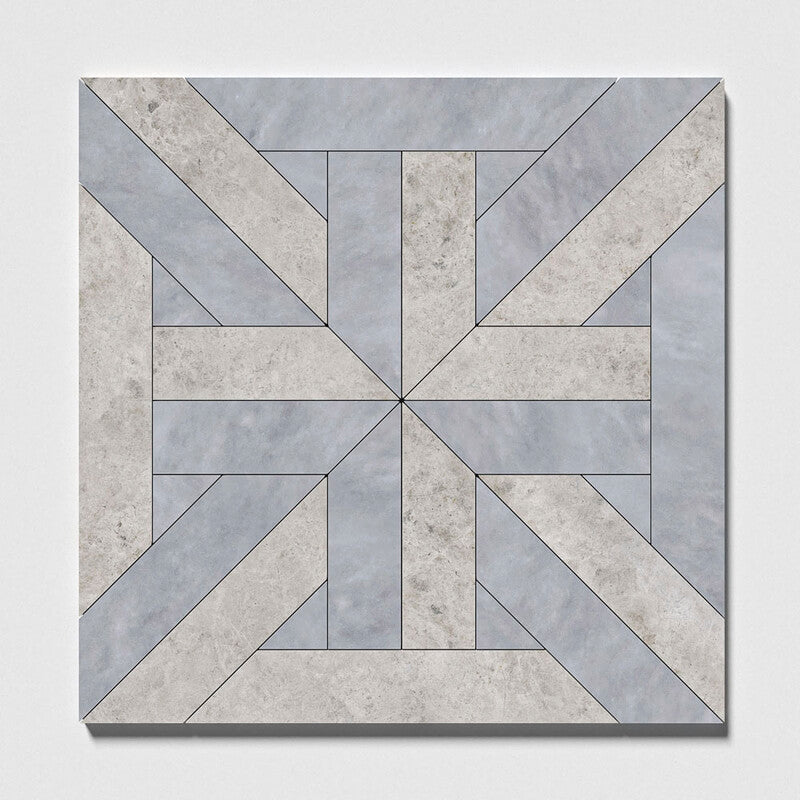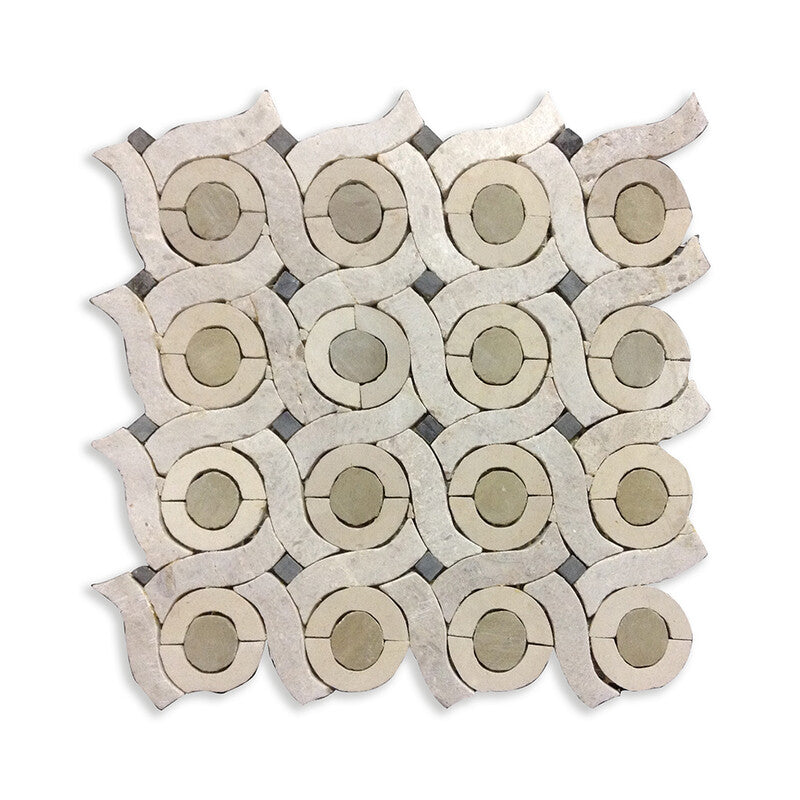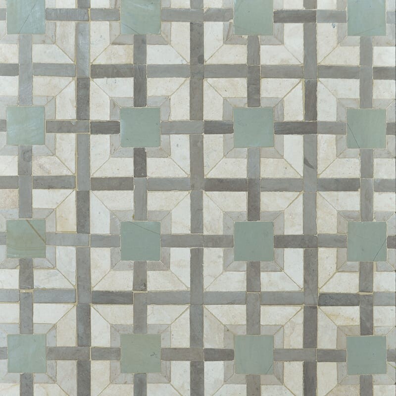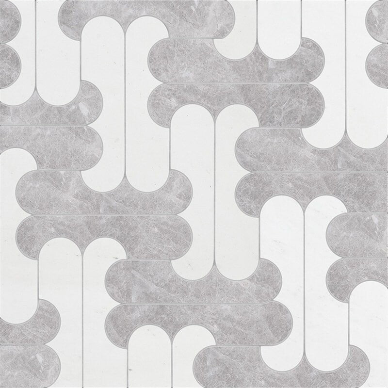 Bianco Dolomiti, Lakeside Gray, Sea Mist Polished Chase Waterjet Marble Mosaic (MYS)