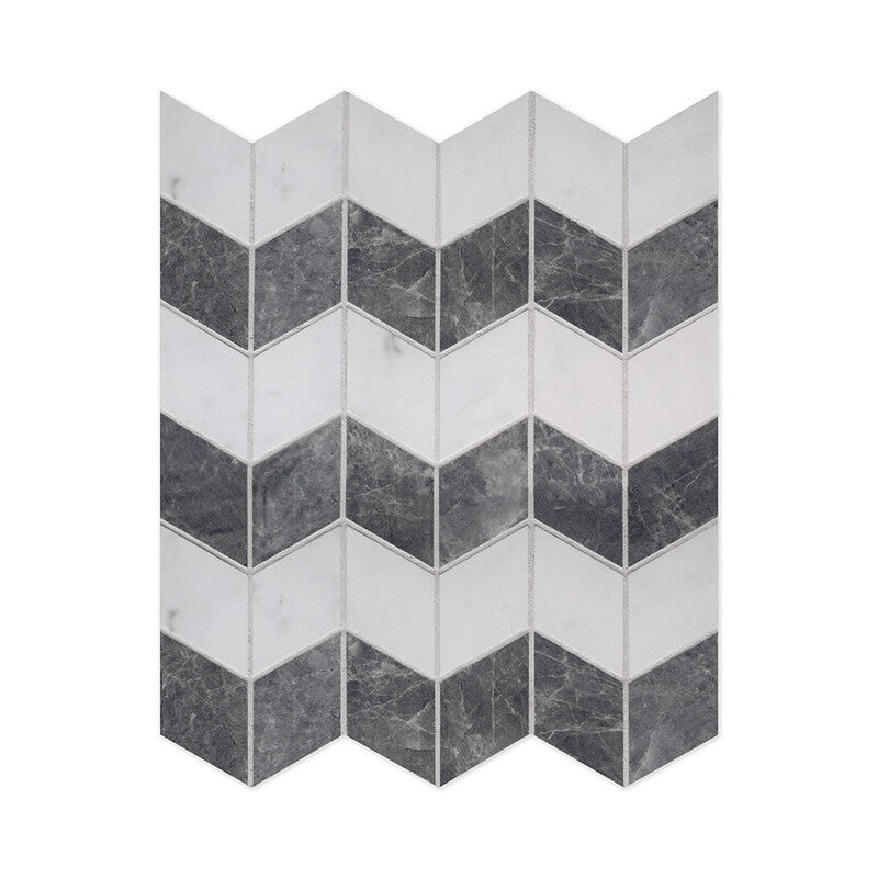 Bianco Carrara Polished Zig-zag Marble Look Porcelain Mosaic (MYS)