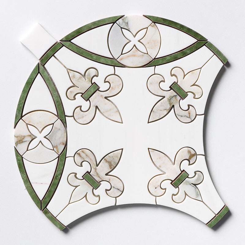 Calacatta Green, Snow White, Gunmetal Polished Quincy Waterjet Marble Mosaic (MYS)