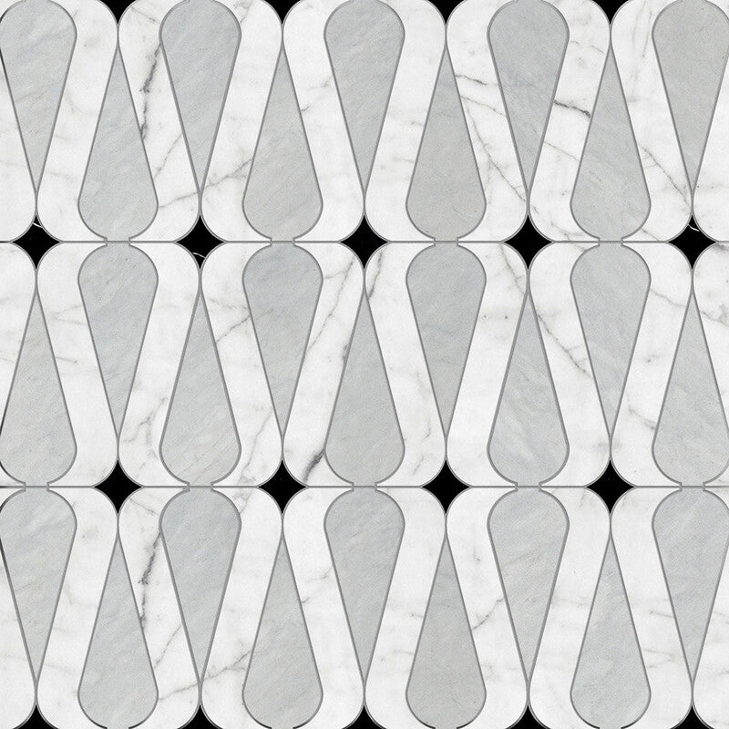 White Carrara, Avenza, Black Multi Finish Linon Waterjet Marble Mosaic (MYS)