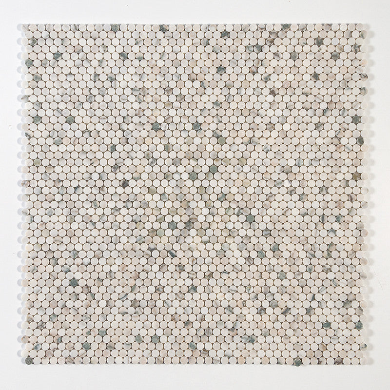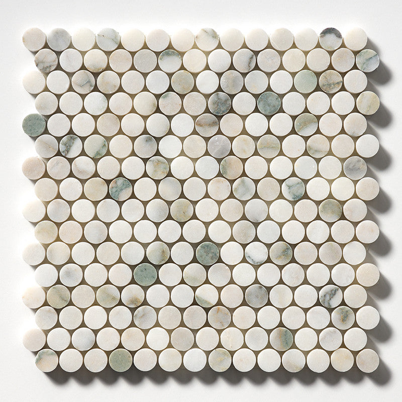 Calacatta Green Honed Penny Round Marble Mosaic (MYS)
