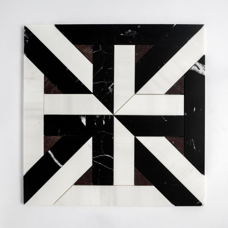 Black, Snow White Honed Eames Waterjet Mosaic (MYS)