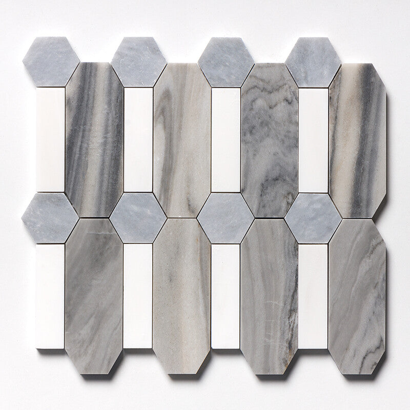 Avenza Light, Dolomite, Palisandra Multi Finish Damascus Marble Mosaic (MYS)