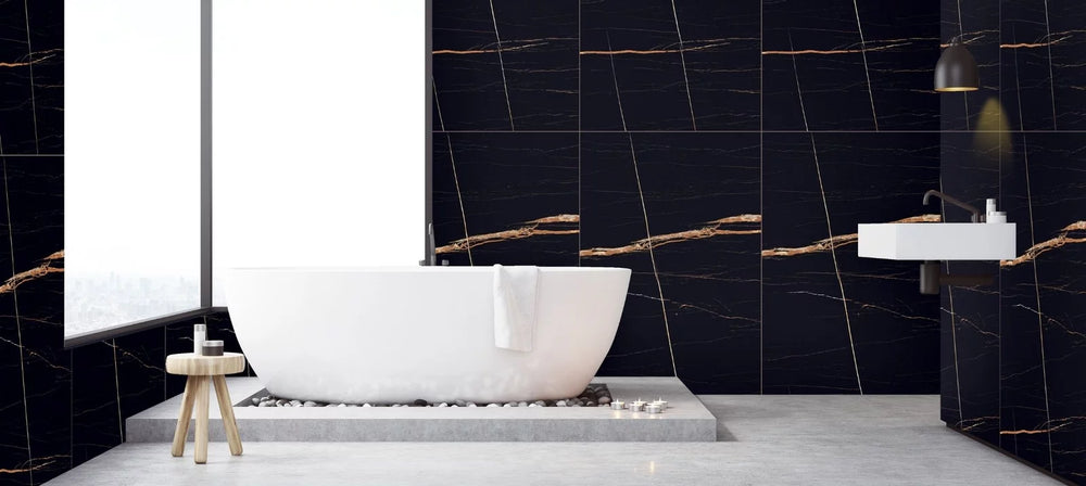 Calacatta Vena Oro , Crystal , Statuario Versilia , Titanium Black .