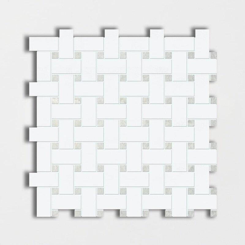 Diana Royal, Snow White Honed Classic Lattice Marble Mosaic (MYS)